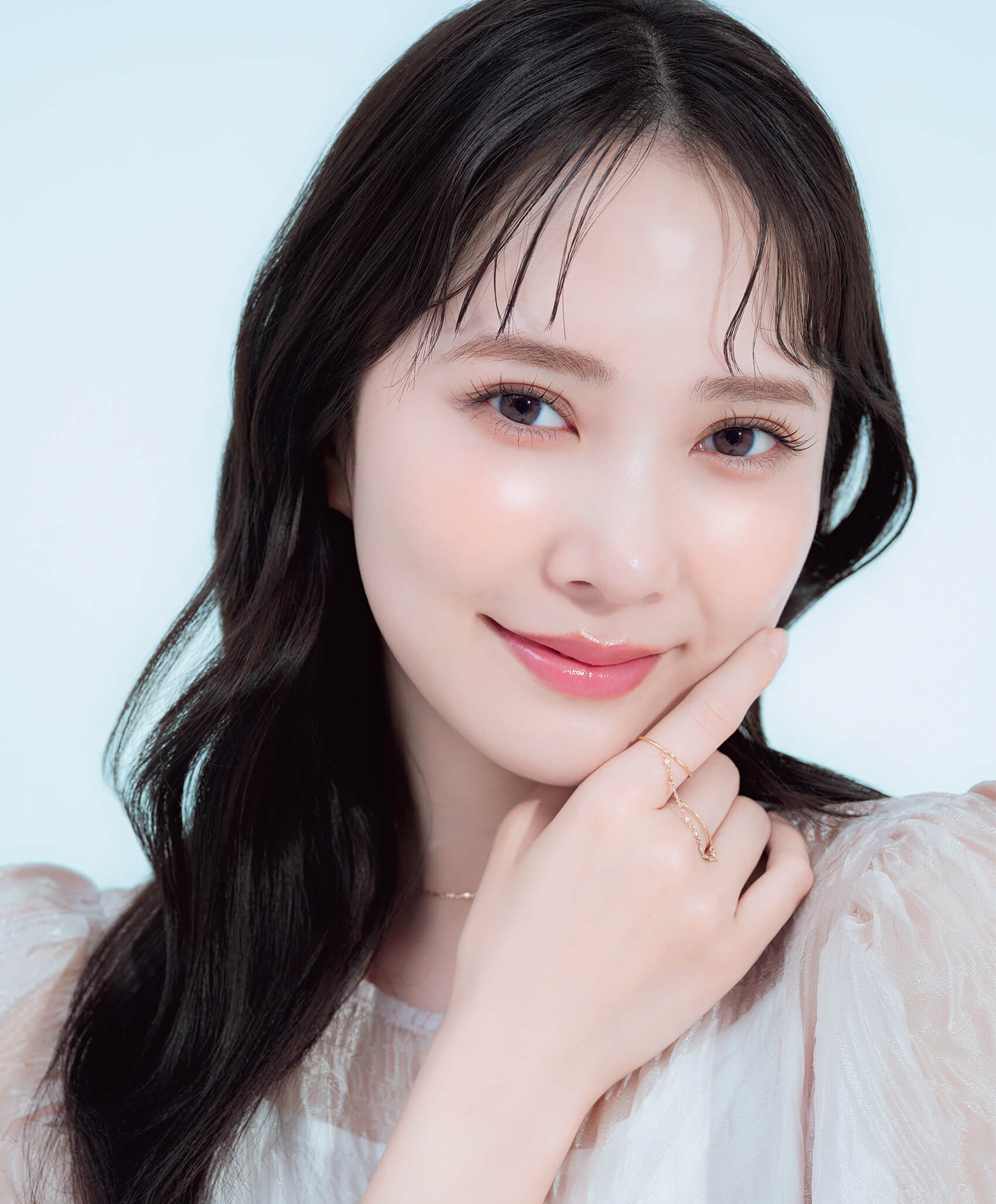 モデル着用/ブラウス¥17,600(ハニーミーハニー)、ネックレス¥31,900(シエナロゼ表参道ヒルズ店)、リング[2連]¥154,000(ete)