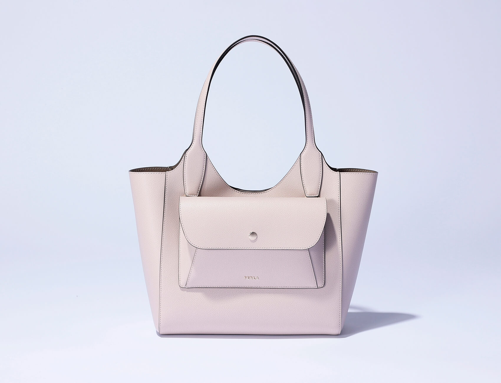 長めハンドルがエレガントな“フルラ レア”。流れるような曲線を描くハンドルは、自然と肩と体にフィットするように計算されていて、使い心地のよさも抜群!フロントのポーチは取り外しも自在だから、通勤時のランチにポーチだけを持って外出…なんてフットワーク軽く使えちゃう♪