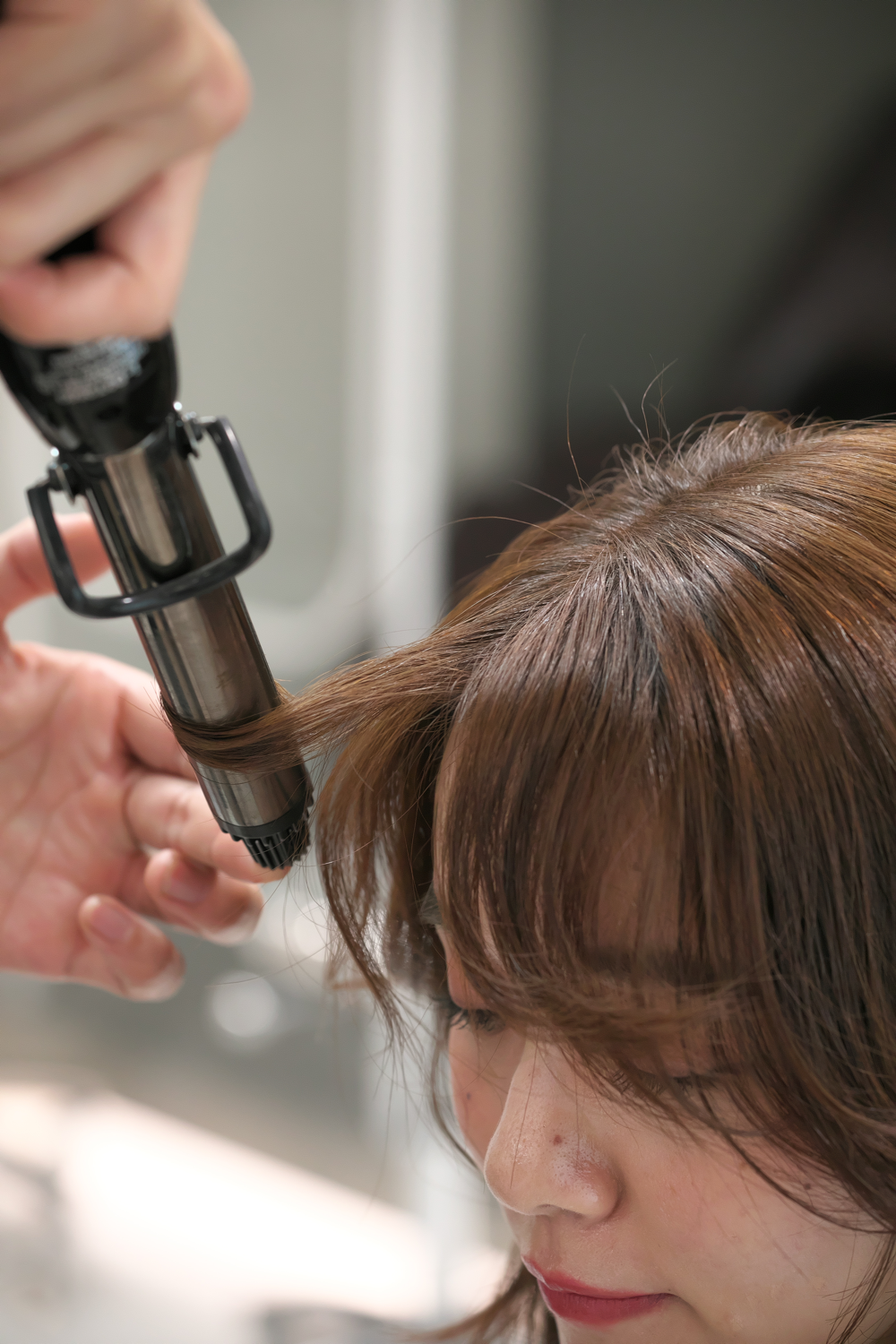 ★ラウンド前髪……おでこを隠し、目の上で毛先が流れ、サイドが自然にラウンドしている前髪のこと。