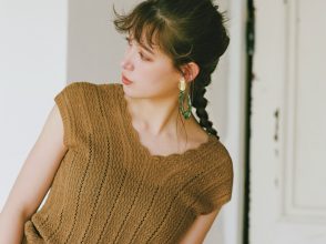 [ポイント]顔周りと首元に細い毛束を残すことで、女性らしいやさしい印象に。後れ毛は、太めのアイロンでゆるく巻くと、よりこなれた雰囲気に!