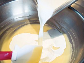 4/豚バラ肉はブロックのまま冷凍庫で30分程度軽く凍らせ、約1.5cmの厚さに切る。