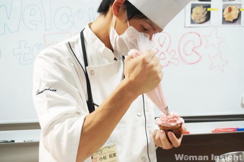 イケメン×スイーツ、甘い×甘い実習がスタート♪ 本日の課題は「カップケーキのデコレーション」。まずは先生のお手本から。