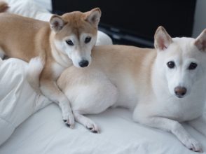 高垣さんは「さくら」という白いお母さん柴犬と、その娘の茶柴「ぽてこ」の2匹の柴犬、通称「さくぽて」親子を飼っています。2匹とも高垣さんの丁寧なお手入れのたまものか、毛並がつやつやふわっふわ!